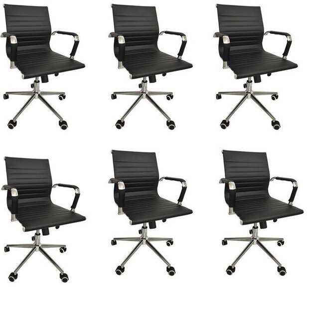 Kit 6 Cadeiras Office com Rodízio e Encosto Esteirinha Baixa Preto