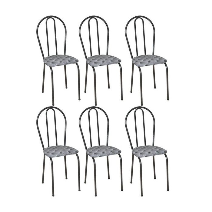 6 Cadeiras Para Cozinha Sem A Mesa De Ferro Cromo 004 com Estrutura Cromo Preta com Assento Capitone