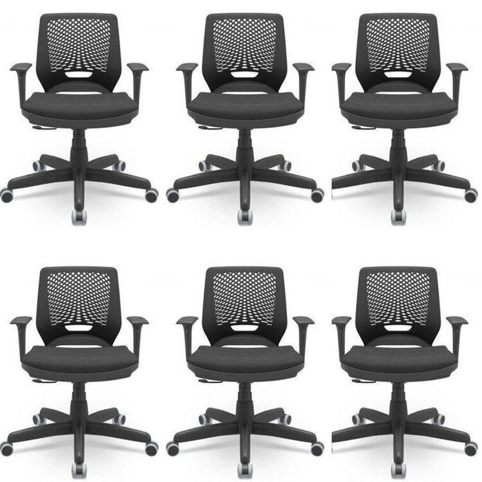 Kit 6 Cadeiras para Escritório Ergonômica Giratória Beezi Nr17 Preto