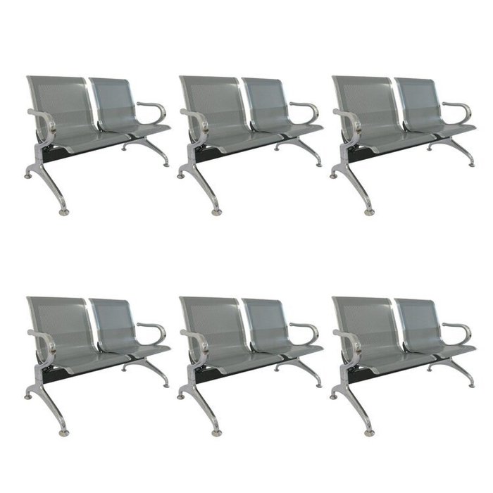 Kit 6 Cadeiras para Escritório Longarina 2 Lugares Aço Inox Dubai Cinza