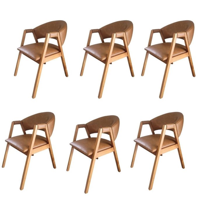 Kit 6 Cadeiras para Mesa de Jantar com Encosto Curvo em Madeira Maciça Hibisco Caramelo