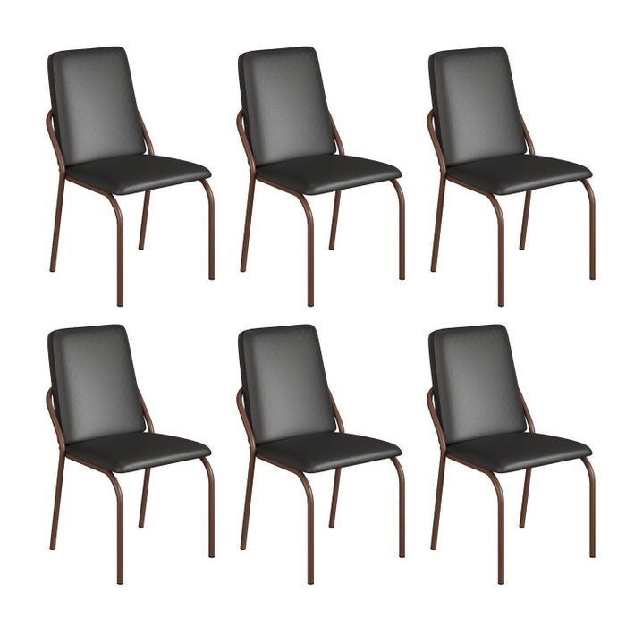 Kit 6 Cadeiras para Sala de Jantar Malibu Preto liso / Marrom