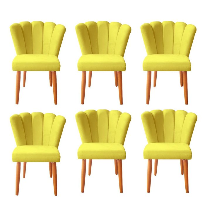 Kit 6 Cadeiras Poltrona Sala de Jantar Penteadeira Reforçada Decorativa Pétala Suede Amarelo