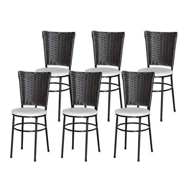 Kit 6 Cadeiras Pretas para Cozinha Hawai Café - Branco Branco