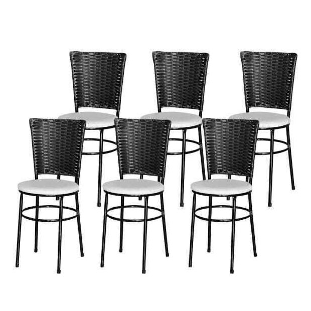 Kit 6 Cadeiras Pretas para Cozinha Hawai Preto - Branco Branco