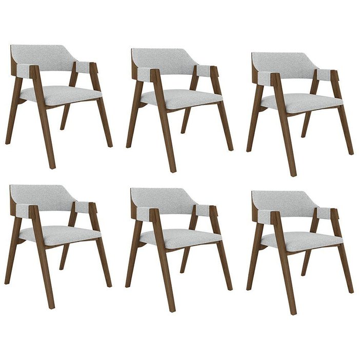 Kit 6 Cadeiras Sala De Jantar E Jogos Carteados Madeira Maciça Poker Linho Cinza/nogueira G42 - Gran Belo