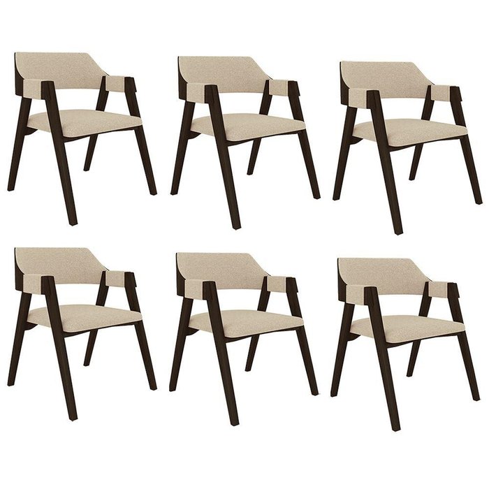 Kit 6 Cadeiras Sala De Jantar E Jogos Carteados Madeira Maciça Poker Linho Offwhite/capuccino G42 - Gran Belo