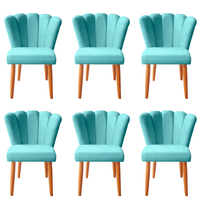 Kit 6 Cadeiras Sala de Jantar Estofada Pétala Suede Azul Tifany - Twdecora Azul Tifany