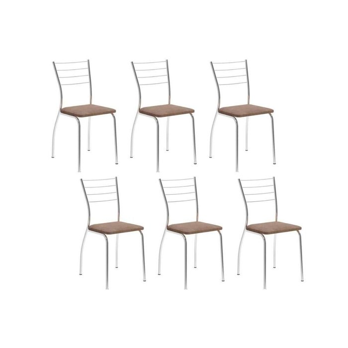 Kit 6 Cadeiras Sala Jantar 1700 6 Un Cromada/suede Conhaque - Carraro