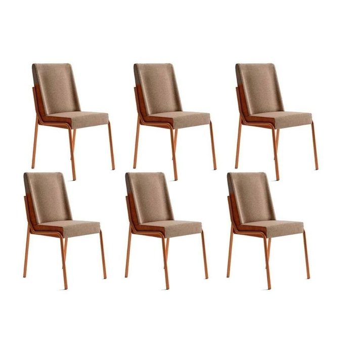 Kit 6 Cadeiras Sala Jantar Hug 1749 6 Uni Rose/linho Areia/courano Caramelo - Carraro