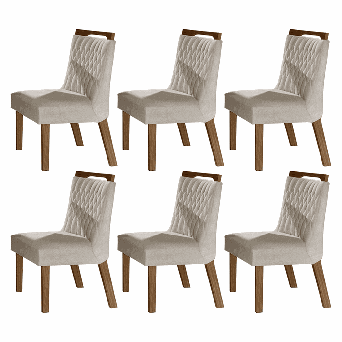 Kit 6 Cadeiras Salvina Estofadas 100% MDF C/ Espaldar Suede Animale Bege Claro / Castanho Fosco