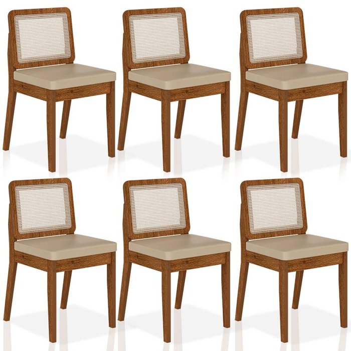 Kit 6 Cadeiras Sextavada Sydney Freijó/corino Bege - Móveis Arapongas Freijó/corino Bege Freijó/Bege