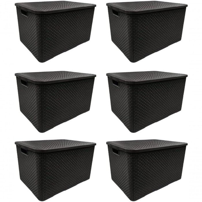 Kit 6 Caixas Organizadoras Rattan 7 Litros Preta com Tampa