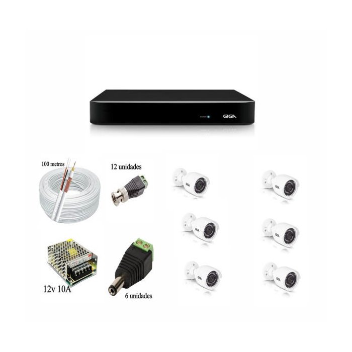 Kit 6 Câmeras de Segurança bullet metal HD 720p Giga Security GS0016 + DVR Giga Security Multi HD + Acessórios