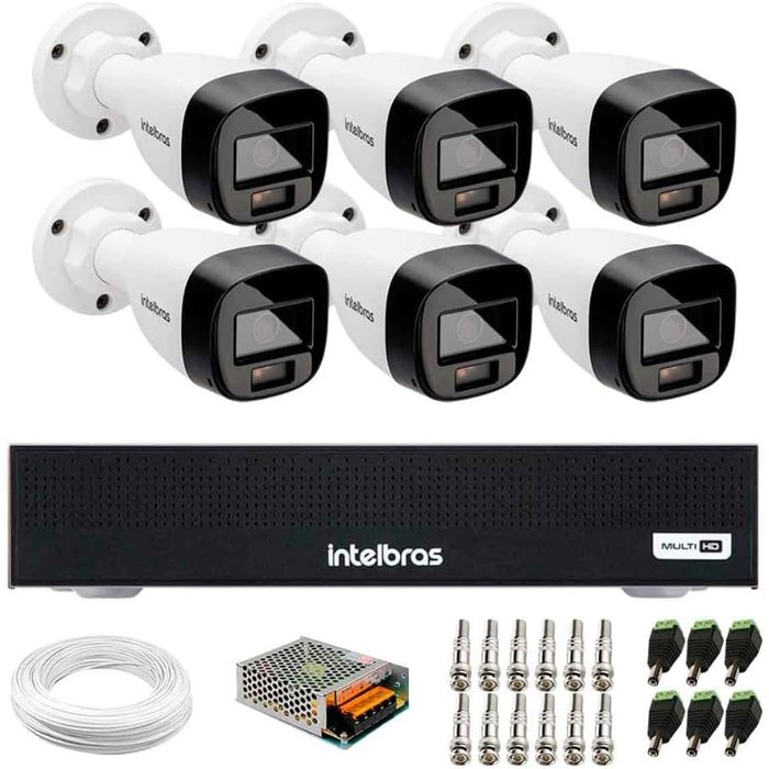 Kit 6 Câmeras Intelbras VHD 1220 B Full Color Bullet Full HD 1080p Multi HD IR 20m + Dvr Intelbras MHDX 1008-C 8 Canais