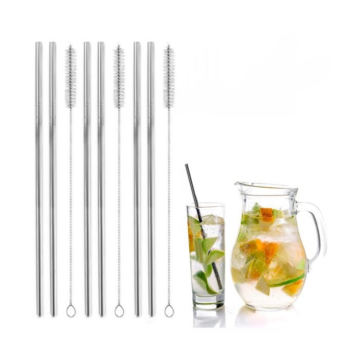 Kit 6 canudos reutilizáveis 21cm inox e 3 escovas Mimo Style
