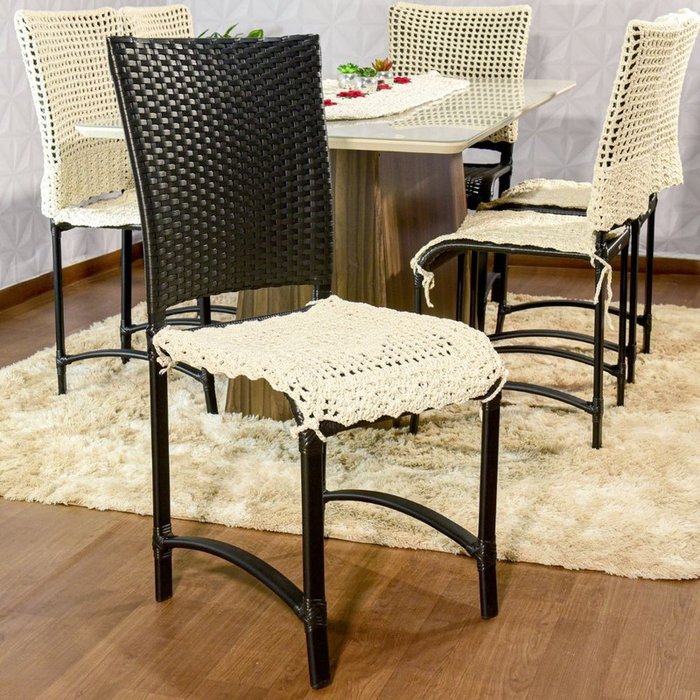 Kit 6 Capa Assento Para Cadeira de Crochê Liso Crochê Liso