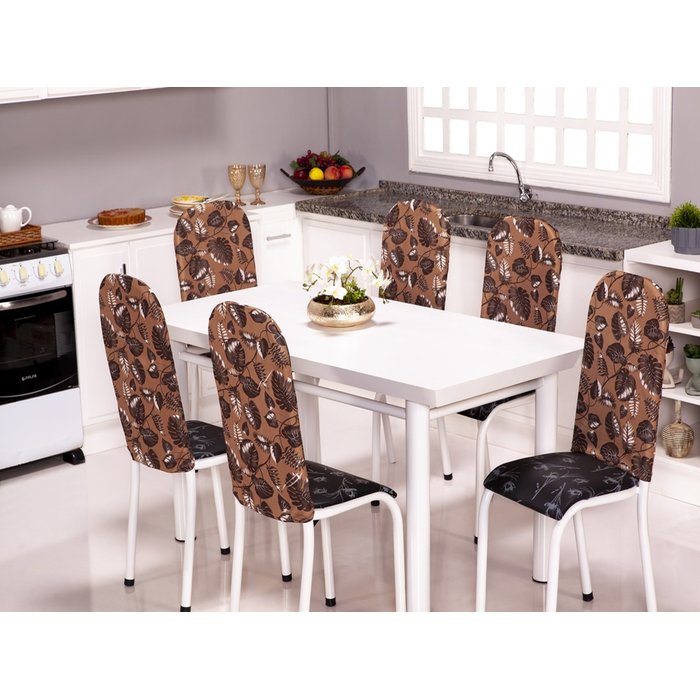 Kit 6 Capas Encosto de Cadeira de Aço Tubular Cozinha Malha Gel Estampa 5 Folhas Marrom