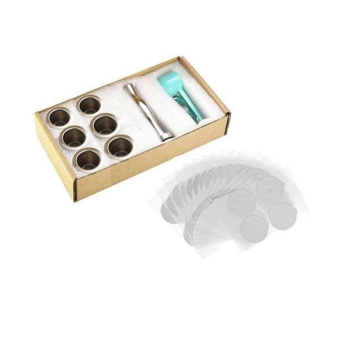 Kit 6 Cápsulas Nespresso Reutilizável Inox + Tamper + 120 Selos