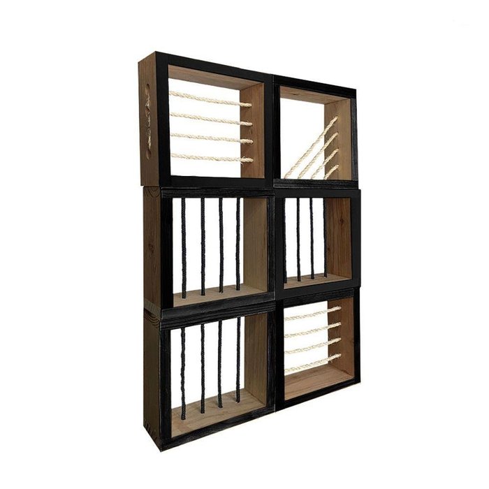Kit 6 Cobogós Paris Madeira Maciça - Borda Preta Elemento Vazado Sisal - Cor: Preto Preto