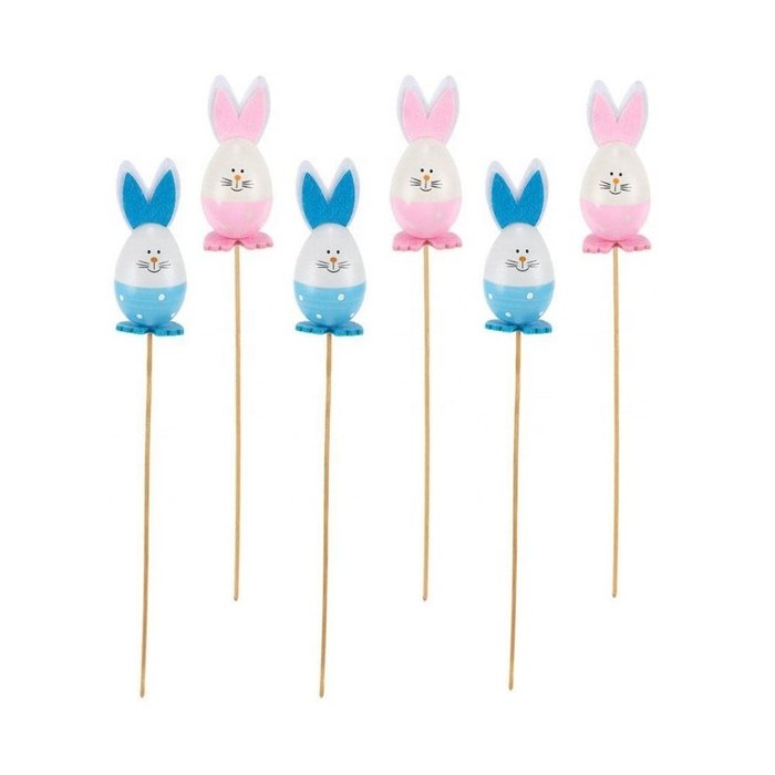 Kit 6 Enfeite Decoração De Páscoa Ovo Com Rosto No Palito