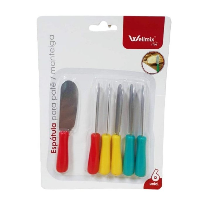 Kit 6 Espátulas Faca Manteiga Patê Geleia Faquinha Pequena Requeijão Aço Inox Polipropileno