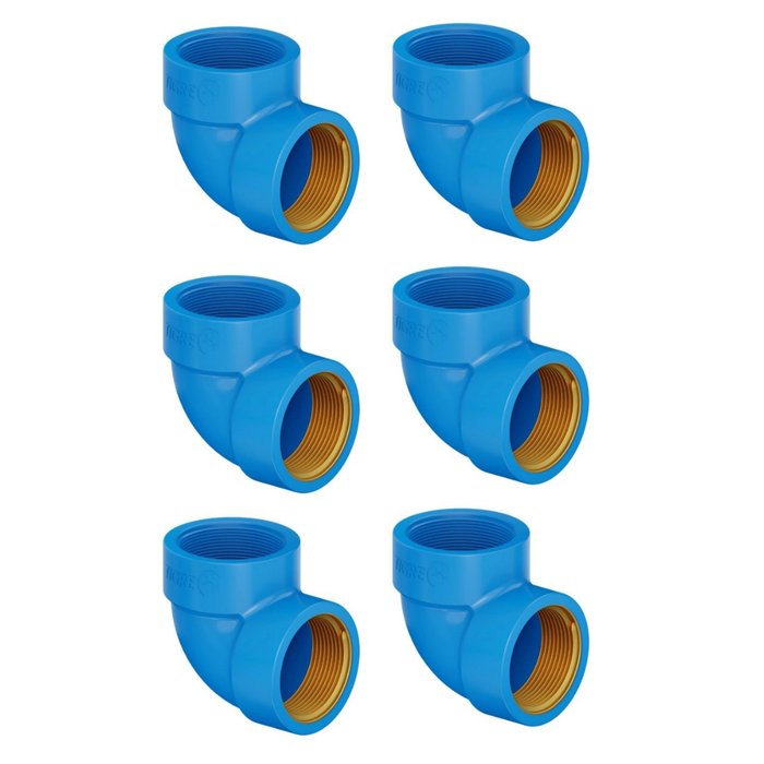 Kit 6 Joelho Cotovelo 90º Pvc Rosca Latão 32mmx3/4'' Azul