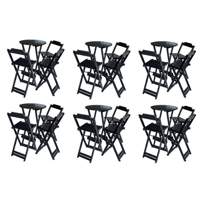 Kit 6 Jogos De Mesa Bistrô De Madeira Dobrável Com 3 Banquetas - Preto Preto