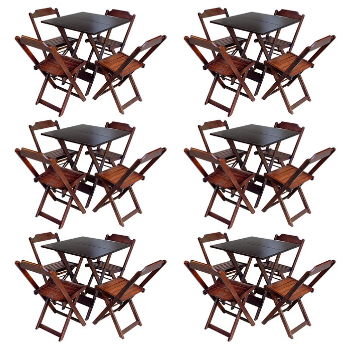 Kit 6 Jogos de Mesa com 4 Cadeiras de Madeira Dobrável 70x70 Ideal para Bar e Restaurante - Imbuia