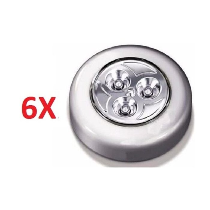 Kit 6 Lâmpadas de LED para Parede e Teto Luminária de Toque Sem Fio para Armario e Closet Lsf