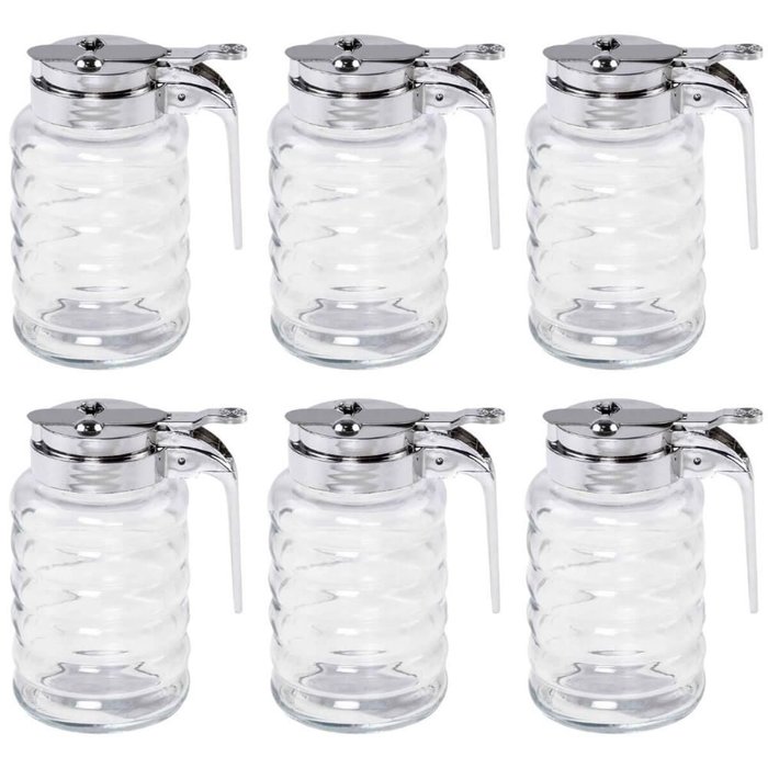Kit 6 Meleiras de Vidro 6x12cm com Dosador 280ml Lyor Pote Mel Tampa Cromada