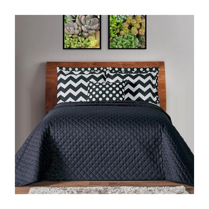 Kit 6 Peças Cobre Leito Mosaico Queen Preto Casa Dona Preto