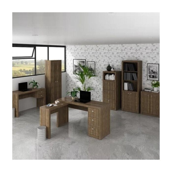 Kit 6 Peças com 2 Escrivaninhas, 1 Armário Alto Fechado, 1 Armário Alto Aberto, 1 Armário Baixo e 1 Gaveteiro