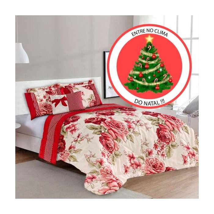 - Descrição: Kit 6 peças Edredom Casa Dona Jardim Florido Vermelho 150 fios