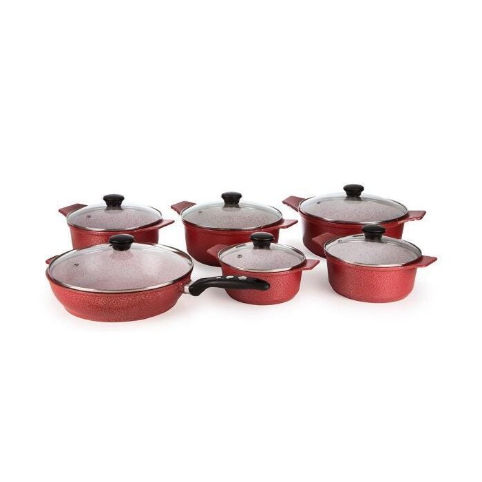 Kit Panelas Plus em Alumínio Fundido Revestimento Cerâmica Antiaderente 6 Peças Vermelho, 16-24.