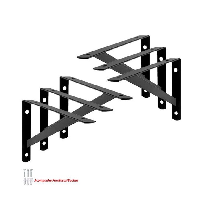 KIT 6 PEÇAS SUPORTE MÃO FRANCESA P/ PRATELEIRA DE 15CM-PRETA PRETA