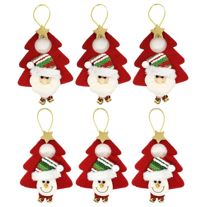 Kit 6 Pelúcias Árvore Noel Guizo Pendente Papai Noel e Boneco de Neve 16cm - Master Christmas