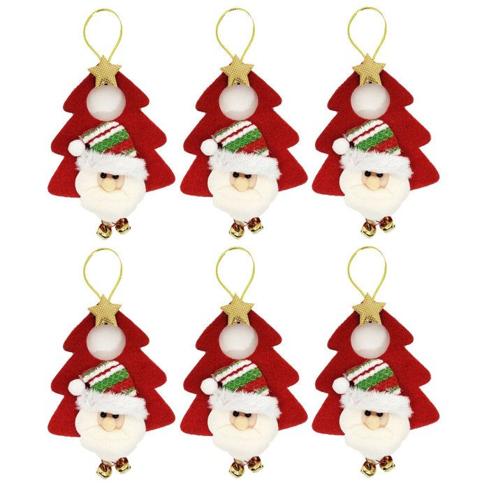 Kit 6 Pelúcias Árvore Noel Guizo Papai Noel Pendente 16cm