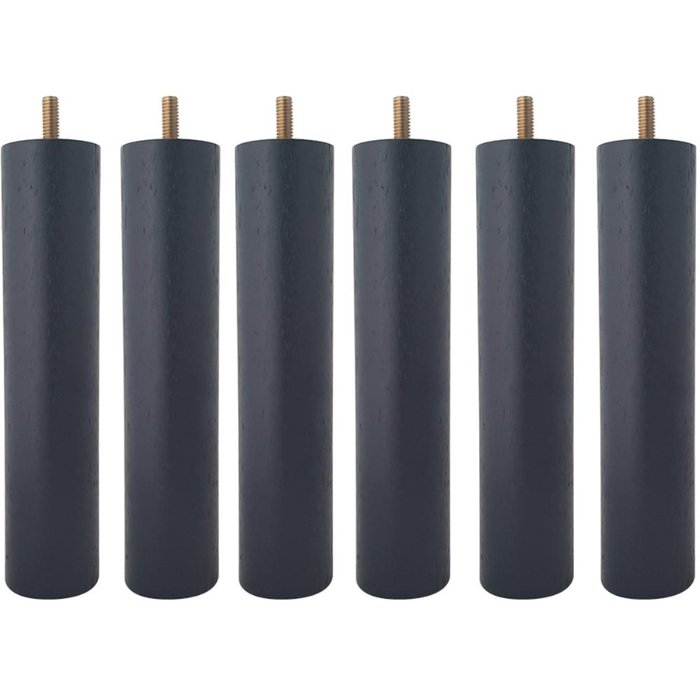 Kit 6 Pés de Cama Box Baú 20cm Casal Pés de Madeira Palito Preto
