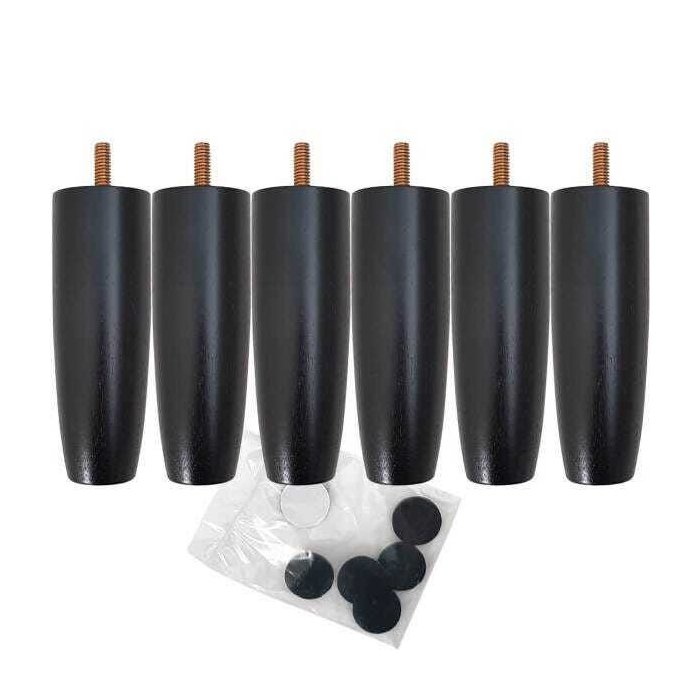 Kit 6 Pés de Madeira para Camas Box Solteiro Pé de Cama 13cm Preto Pés para Móveis Preto