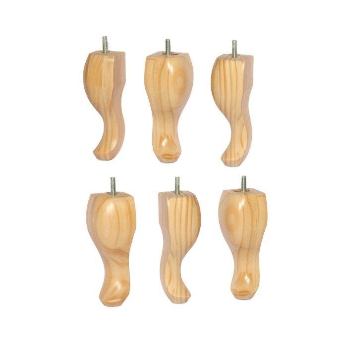 Kit 6 Pés de Madeira Retrô Luiz xv 14,5cm Natural natural
