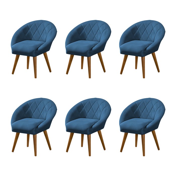 Kit 6 Poltronas Canastra Decorativa para Recepção Estofado Linho Azul Pés Palito