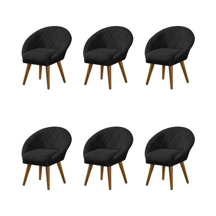 Kit 6 Poltronas Decorativa Canastra Estofada Linho Preto Pés Palito Em Madeira Maciça - Preto