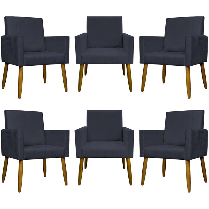 Kit 6 Poltronas Decorativas para Sala Mari Suede