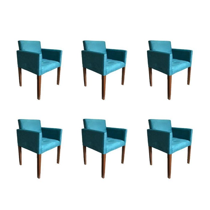 Kit 6 Poltronas Nina Estilo Retrô Tecido Suede Ideal para Sala de Estar - Azul Turquesa - Cor: Azul
