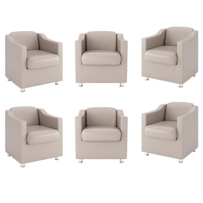 Kit 6 Poltronas Recepção Consultorio Médico courino Bege Bege
