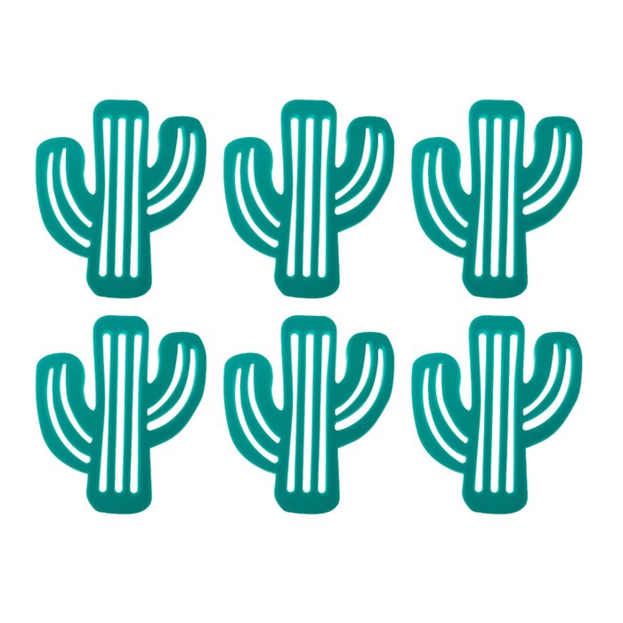 Kit 6 Porta Copo Decorativo em Silicone Formato Cacto Suporte Mesa Bolacha Chopp Verde Água