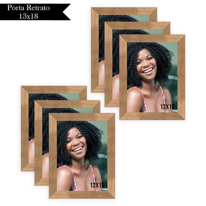 Kit 6 Porta Retrato 13x18 Moldura Premium Fosco c/ Vidro Comum - Natural Tingido - Liso