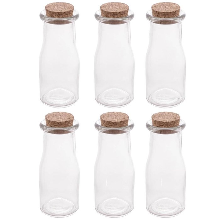 Kit 6 Porta Temperos de Vidro 200ml com Tampa de Rolha Lyor para Decorar e Guardar Especiarias