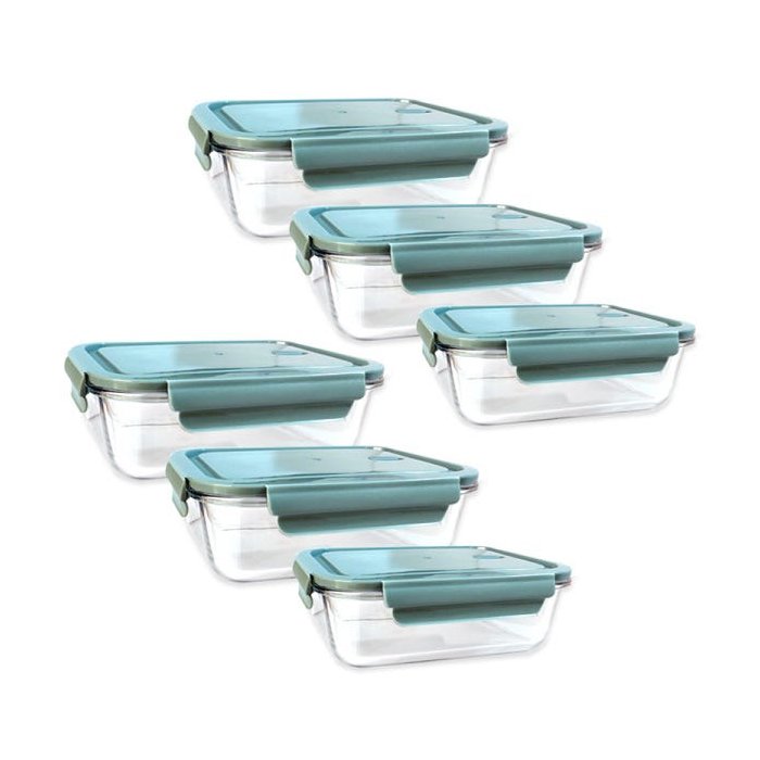 Conjunto Com 6 Potes Vidro Hermético Sistema Lock Azul Claro